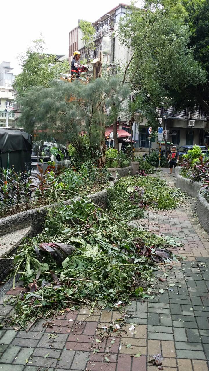 104.8.10蘇迪勒颱風48小時兩階段處理華江國小路樹倒榻先通行後清理完畢